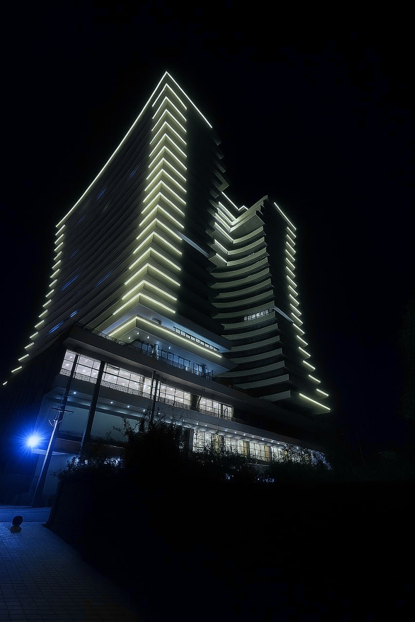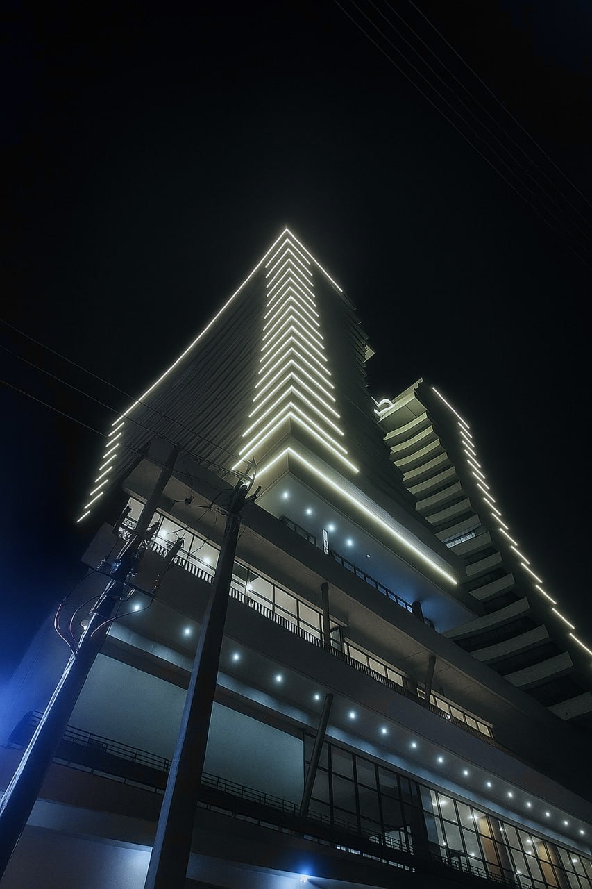 در پروژه نورپردازی نمای آفرینش رامسر، تمرکز طراحی بر برجستهسازی خطوط معماری و نمایش فرم شاخص بنا در شب بوده است. گروه Decolight با بهرهگیری از نورپردازی دقیق و ریتمدار، نمای ساختمان را به ترکیبی از سادگی، ظرافت و درخشش تبدیل کرده است.